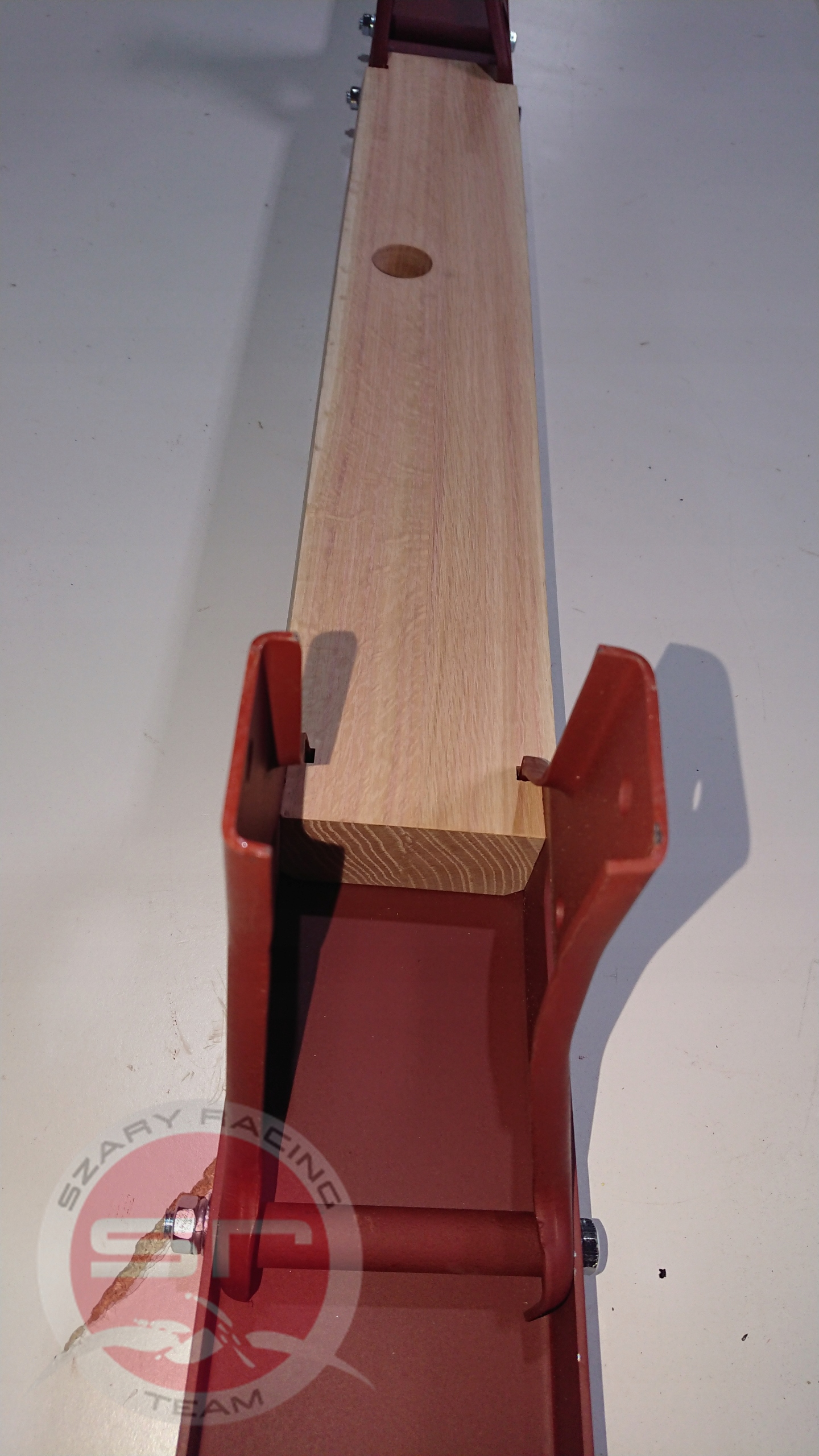 Jeep Willys MB  Zderzak przedni kompletny. Wszystkie wymiary , wartość kąta zagięć ceownika - zgodne z oryginałem. Materiał stężenia drewnianego - dąb.