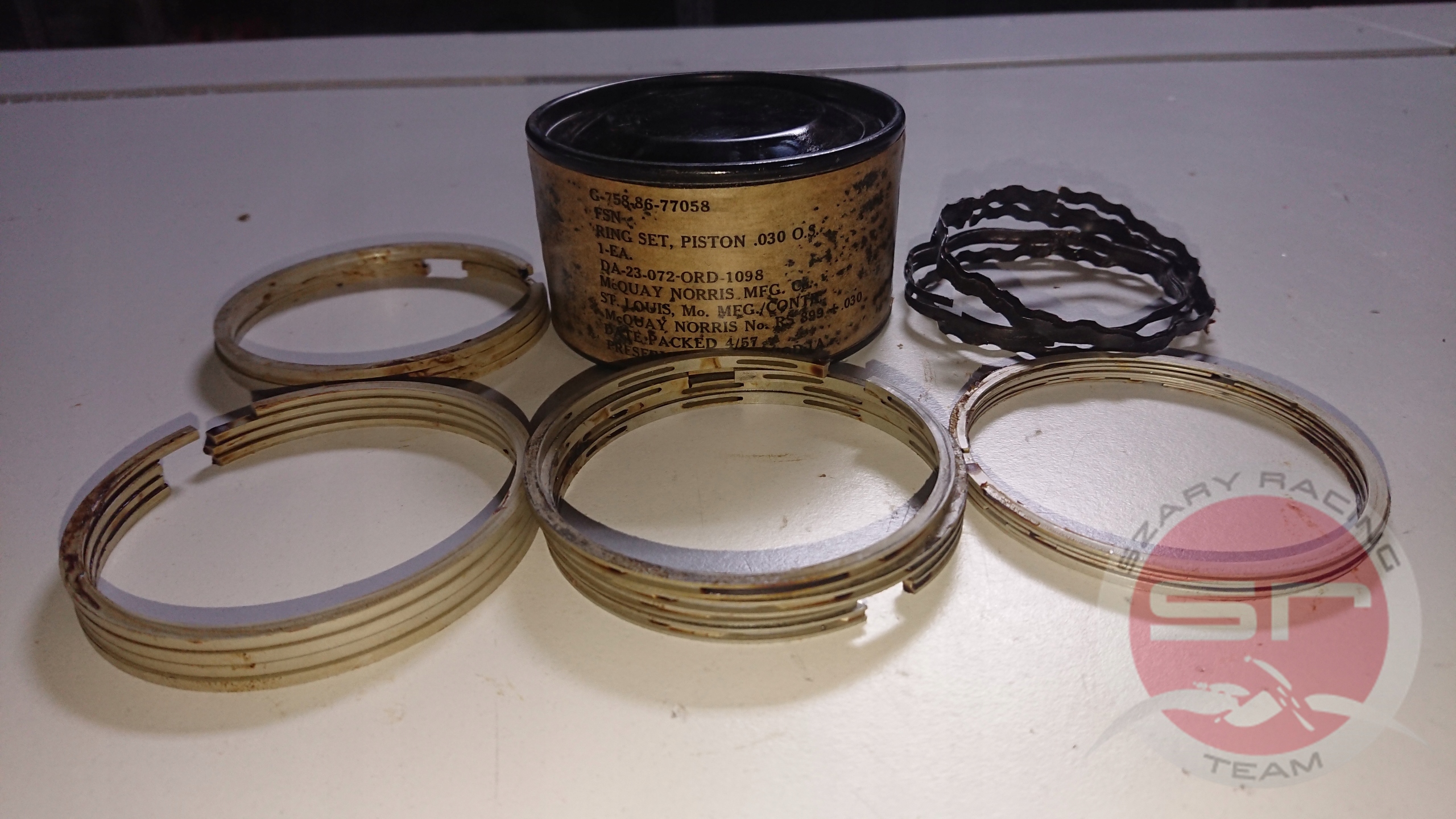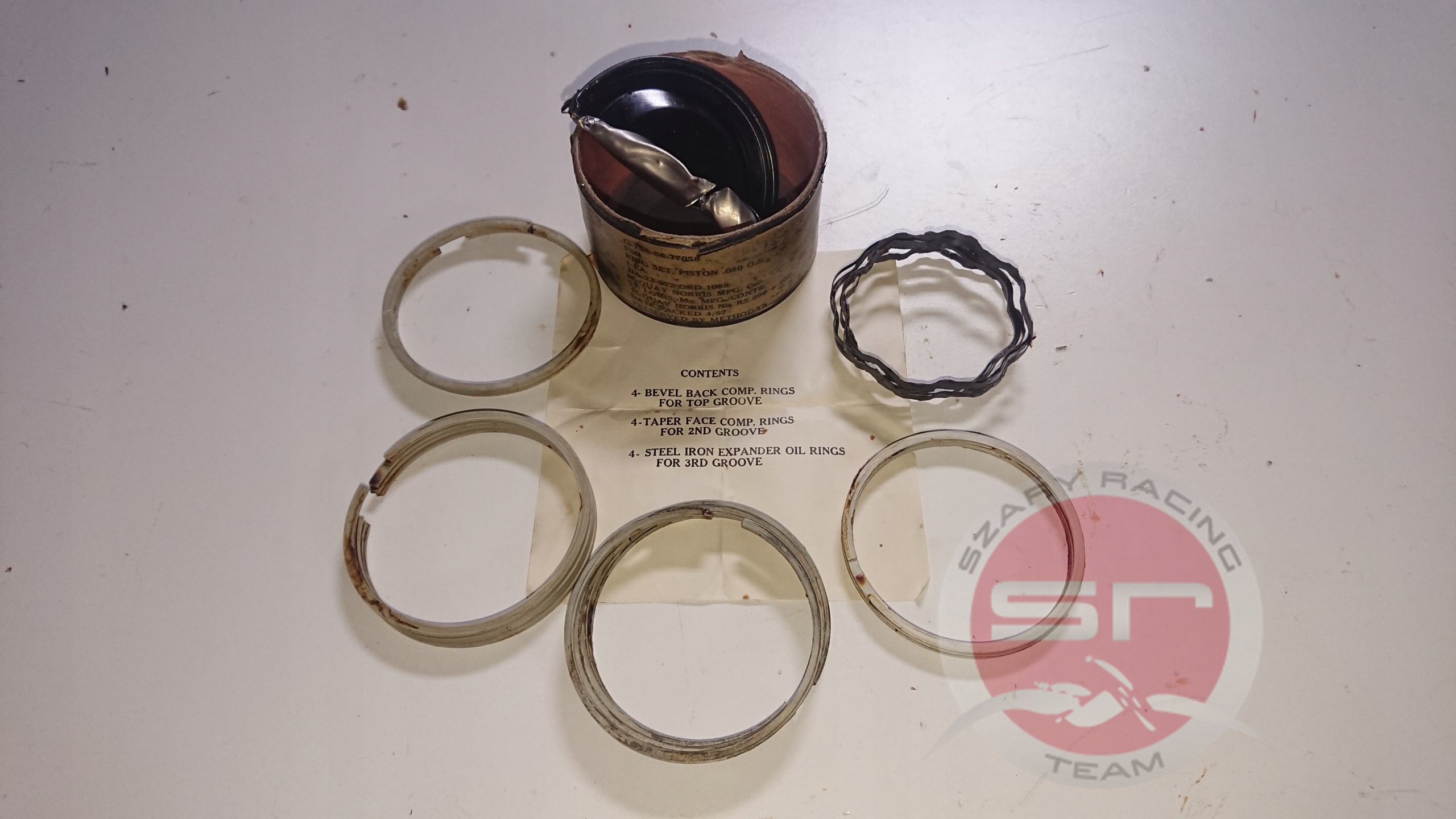 Willys MB Ford GPW Pierścienie tłokowe silnika. Produkcja U.S.A Różni producenci - Perfect Circle, McQuay, Gemotec, Ford Motor Company,Seal Tested,Federal Mogul,Glico,Johnson.